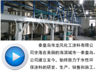 秦皇島市龍風化工涂料有限公司坐落在美麗的海濱城市——秦皇島。公司的前身“秦皇島市海港區七彩絲光王環保涂料廠”,始建于2000年8月23日。十多年以來,始終致力于水性涂料的研發、生產、銷售和施工。為了企業更好更快的發展,滿足涂料行業發展的需要,2010年3月26日正式成立“秦皇島市龍風化工涂料有限公司”,同年在秦皇島市海港區東港鎮龍家營村建造了秦皇島地區規模較大的涂料生產基地——龍風涂料廠。目前該公司是中國建筑裝飾裝修材料協會會員單位和中國建筑裝飾裝修材料協會建筑涂料分會秦皇島辦事處,以及中國涂料工業協會會員單位。公司引進了許多高效的生產設備和配套齊全的檢測實驗設備,運用科學的管理模式,研發了新型的技術配方,培養了一批涂料行業精英,2013年公司被評為“中國建筑涂料行業杰出新銳品牌”。